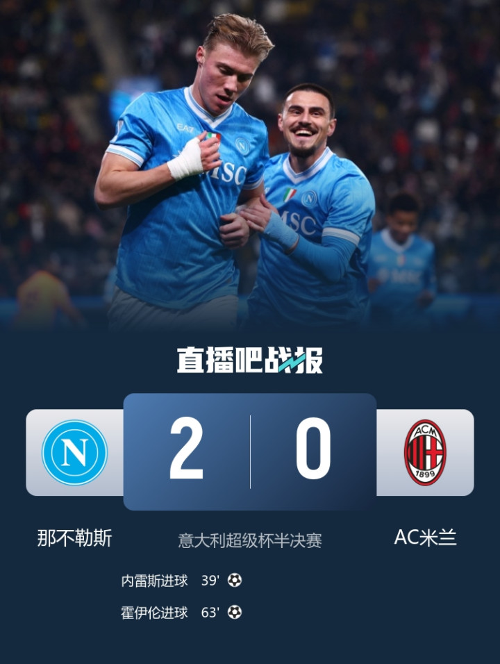 至此,国米连结4年挺进意超杯决赛的历史就此告终。在昨日进行的首场半决赛中,卫冕冠军米兰不敌那不勒斯也遭到淘汰。
